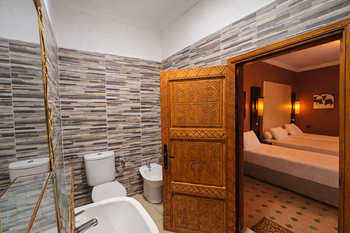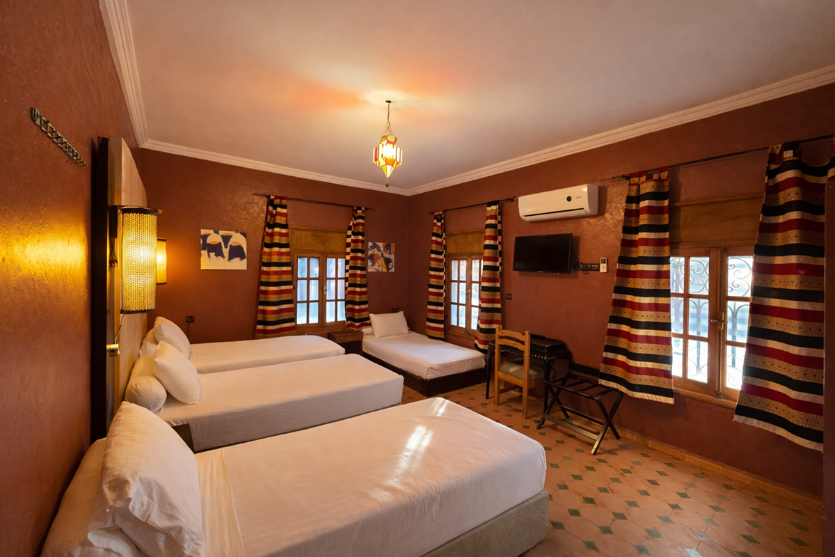 Plongez dans la sérénité des sommets avec Adrar, une chambre qui évoque la grandeur des montagnes du Souss. Un cocon chaleureux où les matériaux naturels et les couleurs terreuses vous transportent au cœur des paysages berbères. Respirez l'air pur, détendez-vous… Ici, l'authenticité et la tranquillité règnent.
