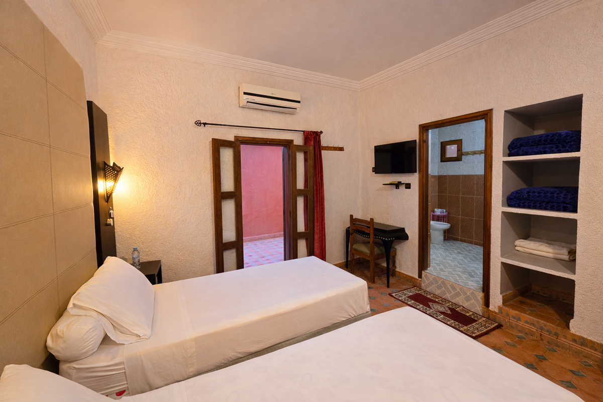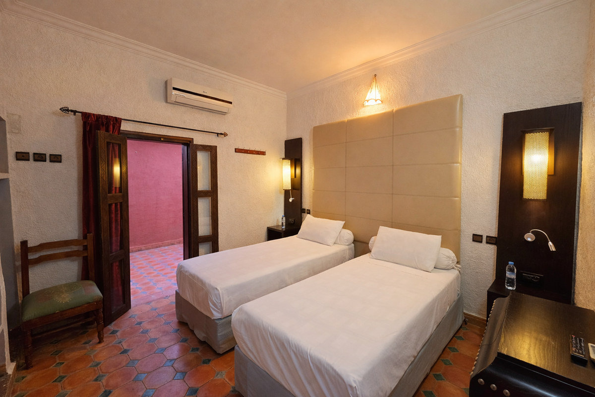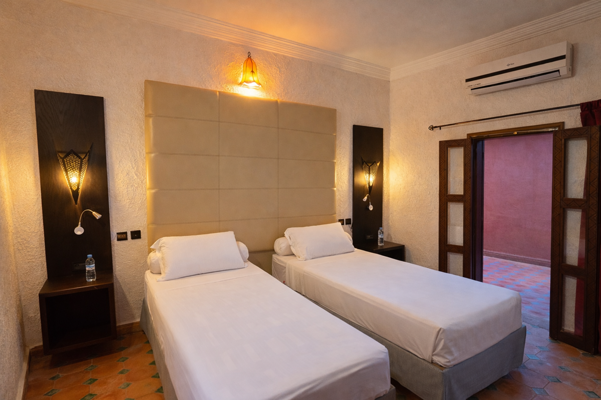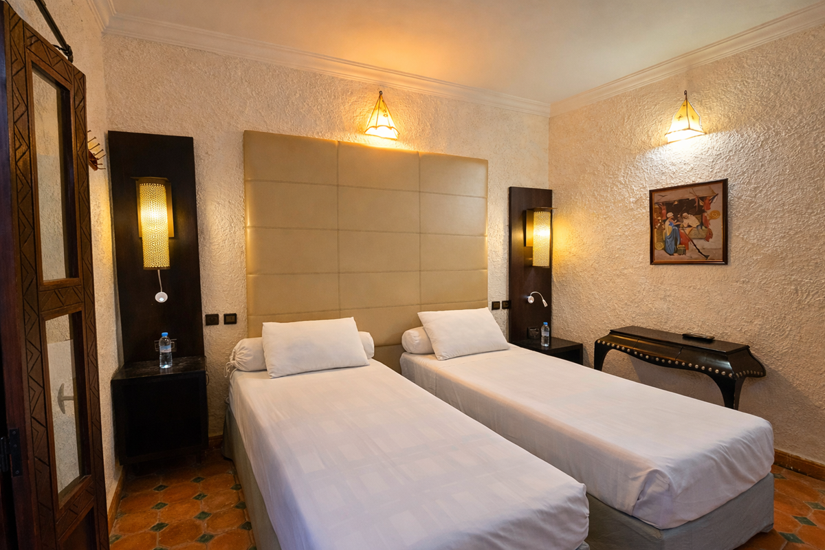 Voyagez au fil de l'eau avec Souss, une chambre inspirée du fleuve éponyme qui façonne la région. Entre fluidité et douceur, elle vous invite à une escapade rafraîchissante, où sérénité et nature se rencontrent.